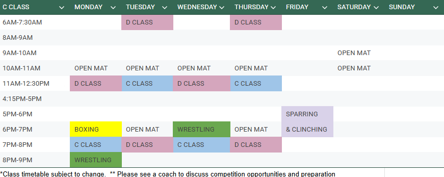 Compared to D class, these classes will require more commitment, consistency and effort. It’s expected to see you strive to be 1% better everyday!