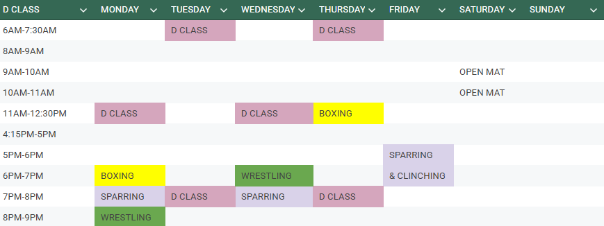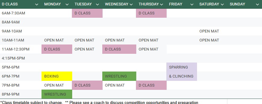 D class sessions will be targeted at those who are new to fighting or have had a couple novice bouts already.